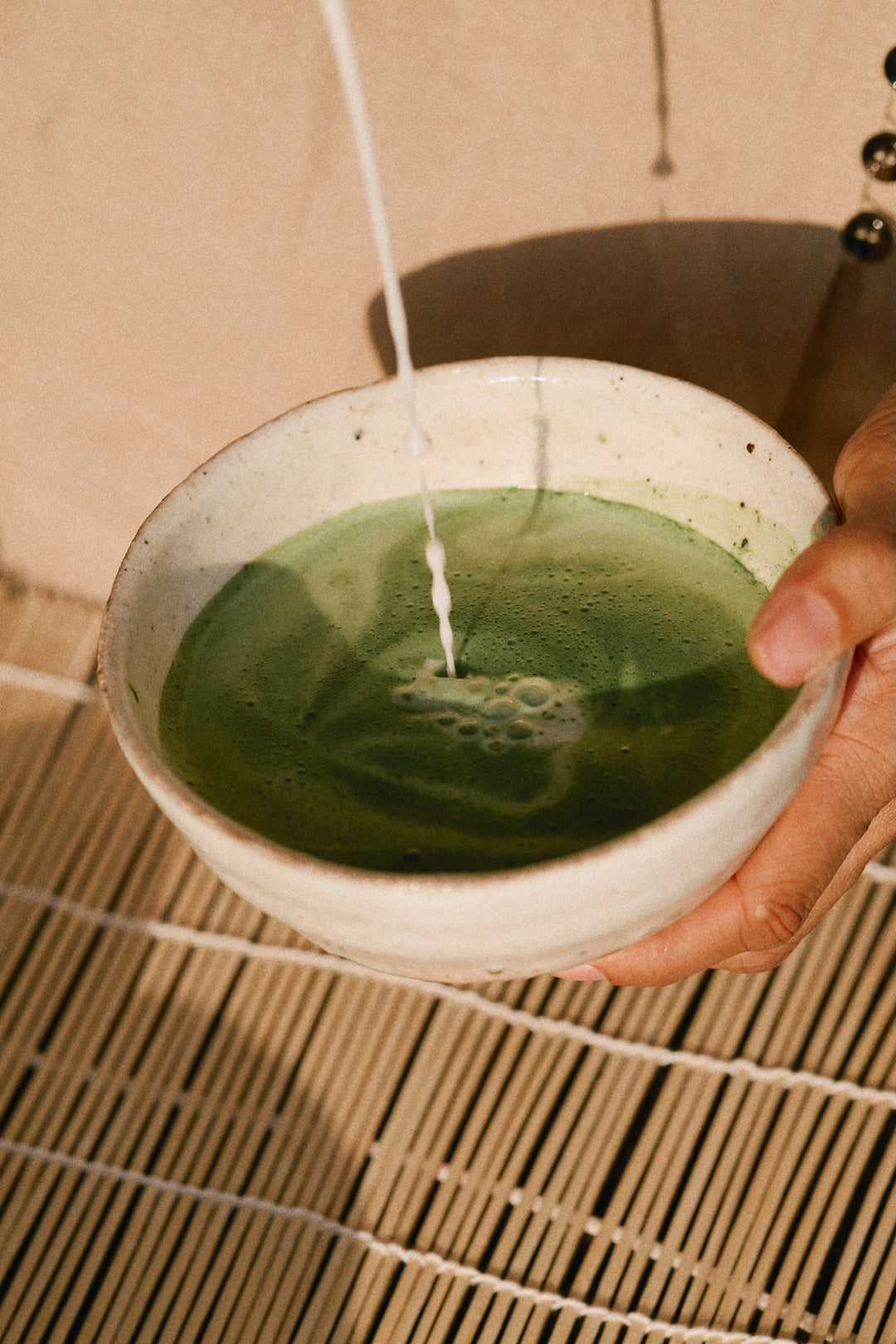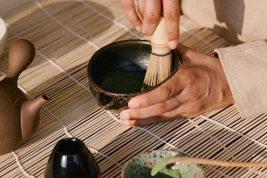 Using a bamboo whisk (chasen), whisk in quick zig-zag motions (like an “M” or “W”).