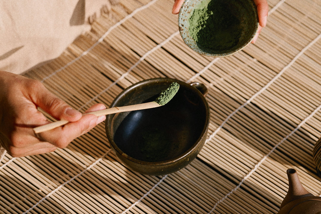 Add 1–2 grams (about 1–2 chashaku scoops) of matcha into a bowl.